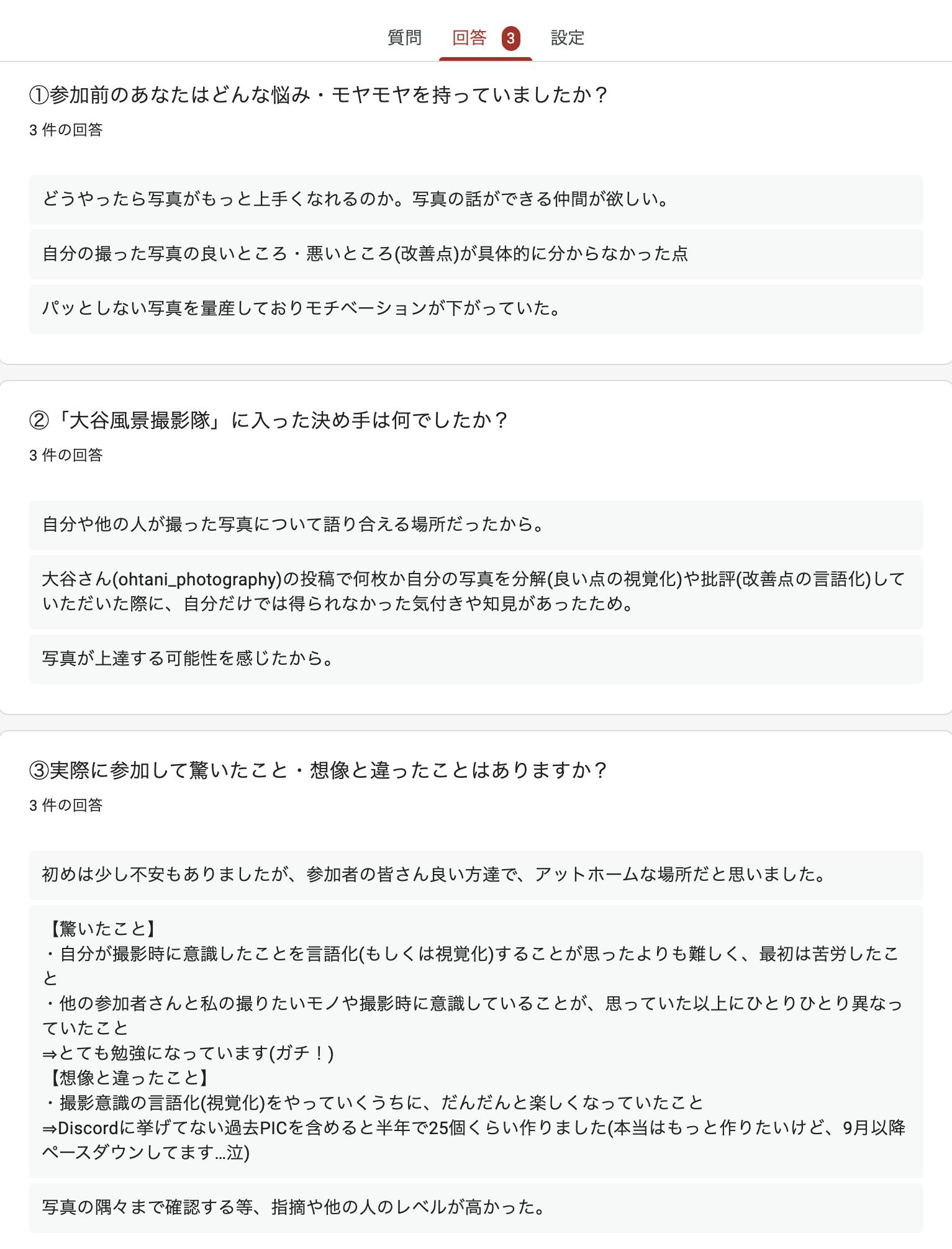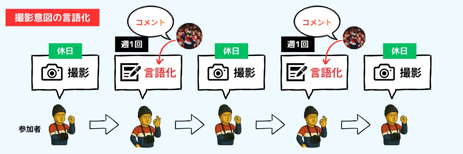 この循環を大谷と他の参加者と共に習慣にすることによって、1人で写真と向き合うときよりも圧倒的に深く写真と向き合えるように設計しています。